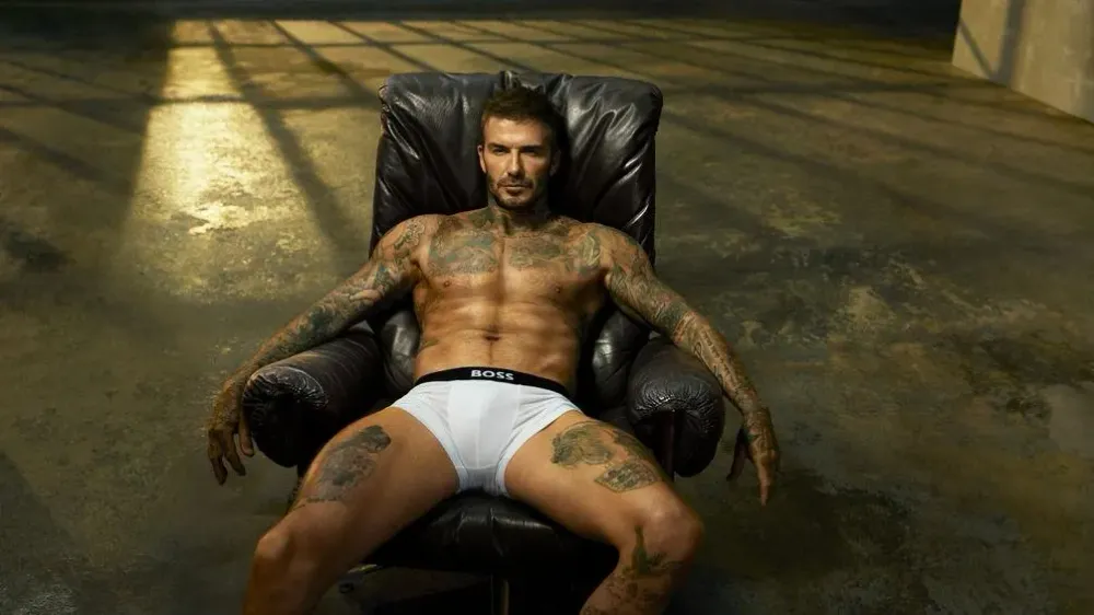 David Beckham i underbukser for Hugo Boss. Perfekt krop. Beckham er sexet uden at være aggressiv alfa-han. Han er bare... Beckham the boss.