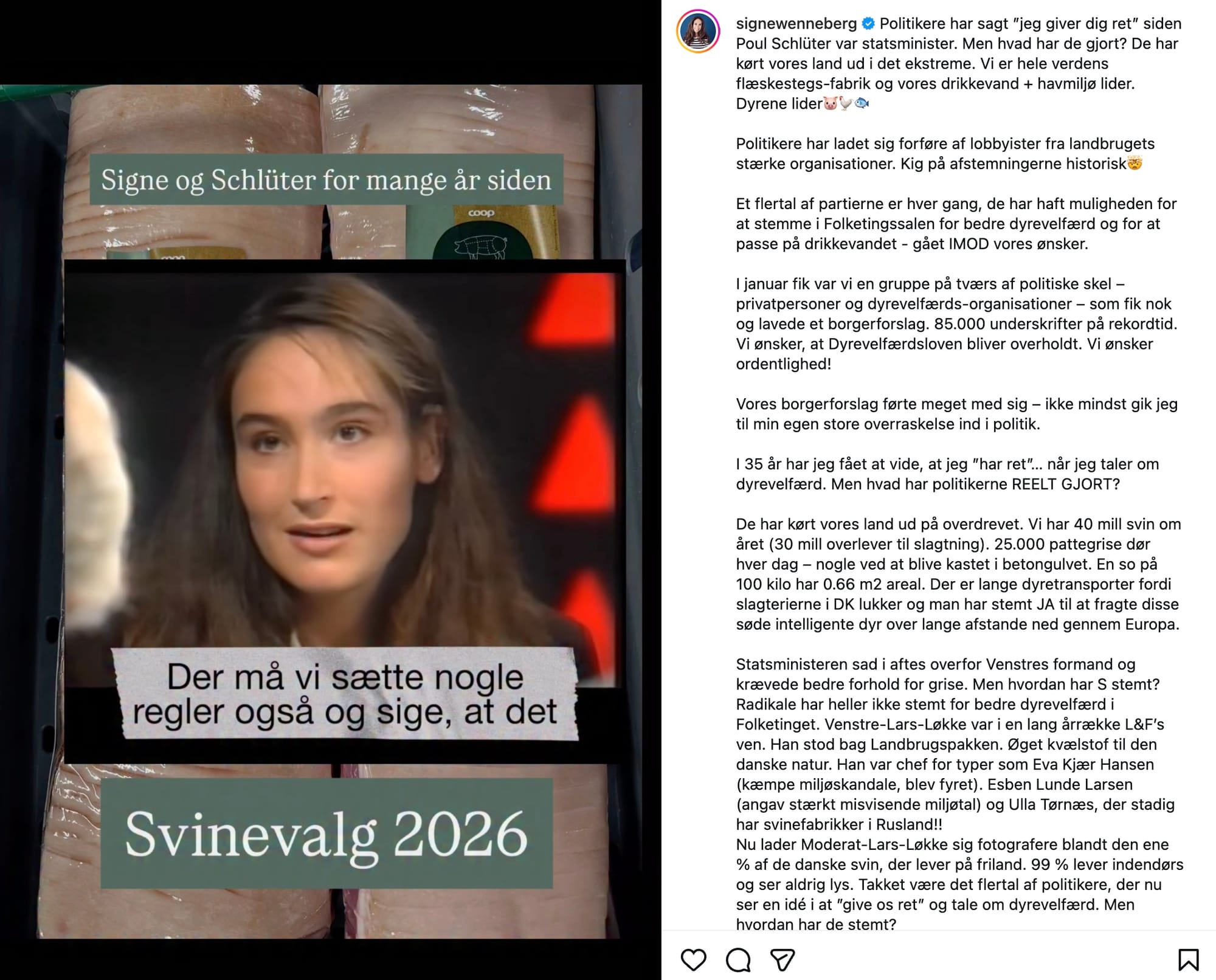 TV2's dokumentar om skrækkelige forhold for grise på svinefabrikker i december og borgerforslaget om dyrevelfærd fra januar, som jeg var med til at stille, har tilsammen skabt et kæmpe ekko. Det er blevet en meget stor dagsorden. Et svinevalg. Og det er interessant, fordi det er så enkelt: Overhold den eksisterende dyrevelfærdslov. Det er bare det, vores borgerforslag handler om.