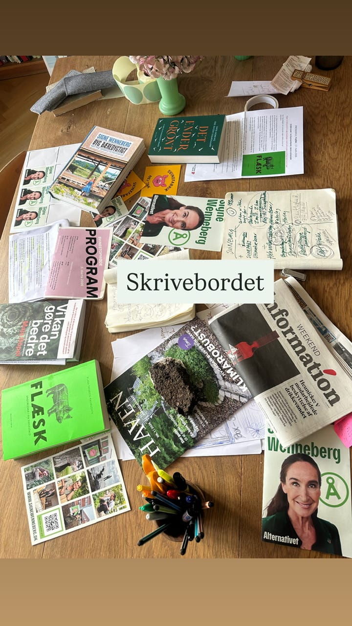 Og så har vi fastholdt opturskampagnen. Når jeg står hos Clement i Debatten, maler jeg et billede af, hvordan Danmark kan se ud uden gylle og gift. Det bliver jo ren optur derude uden svinefabrikker. Der er mange på barrikaderne lige nu. Jeg har valgt at tegne det, jeg gerne vil hen til.