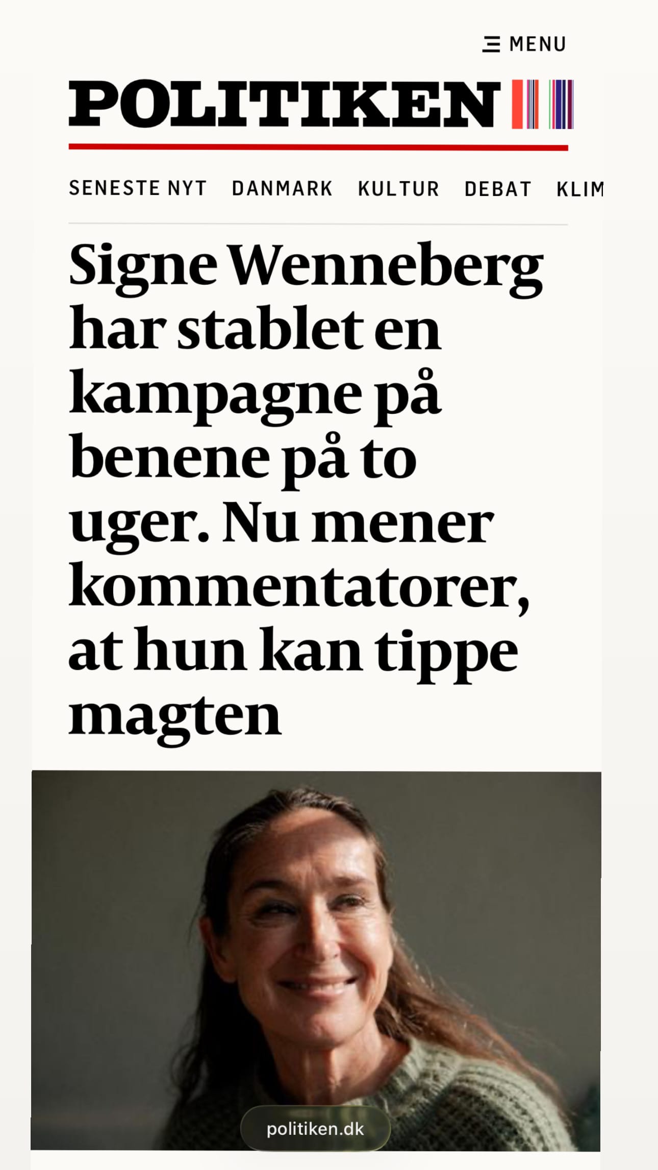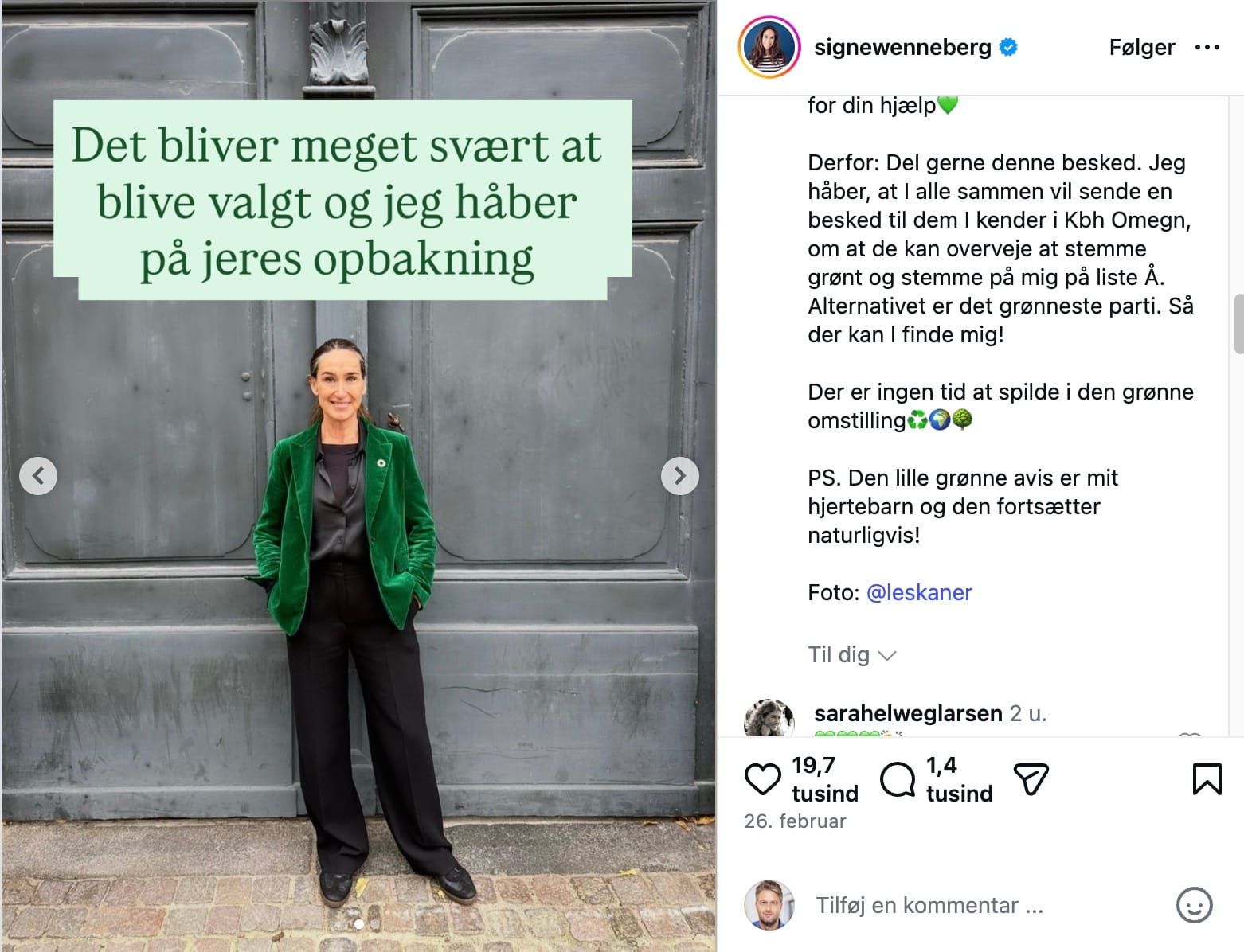 Sådan begyndte en af årets mest usædvanlige valgkampagner. Ikke planlagt fra et kampagnebureau med et etagers moodboard og et halvt år til kommunikationsstrategi. Men heller ikke improviseret på den rodede måde. Signe Wenneberg og hendes kampagneleder Bianca Ott Anthony, satte sig ned dagen efter valgudskrivningen med en retorisk værktøjskasse og lavede en plan.