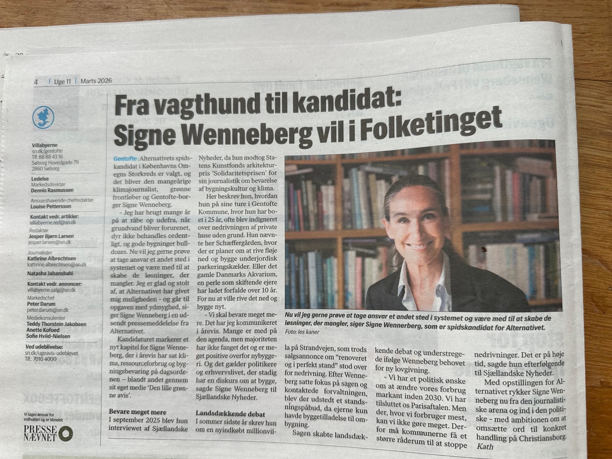 Jeg har valgt, helt low-key, at gå ture med vælgerne ude hvor de bor, hvor de har bekymringer om nye motorveje, gift i vandet, nedrivninger, nybyg og ny infrastruktur. Det er det, jeg fokuserer på. Det nære. Jeg gider ikke stå og råbe i debatter med modstandere. Jeg vil møde folk. Og have sjove, visionære og saglige debatter.