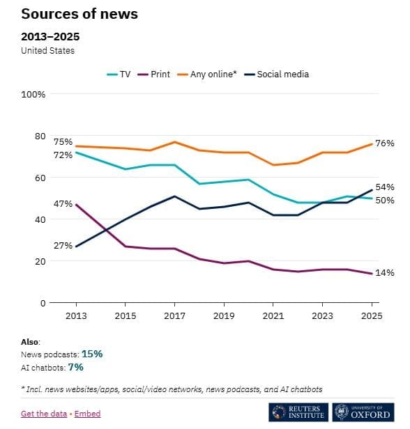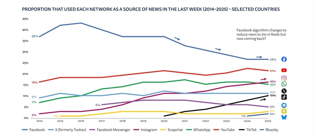Nyhedslandskabet er under dramatisk transformation: Influencere vinder frem, AI integreres. Traditionelle medier kæmper med lav tillid og faldende engagement globalt