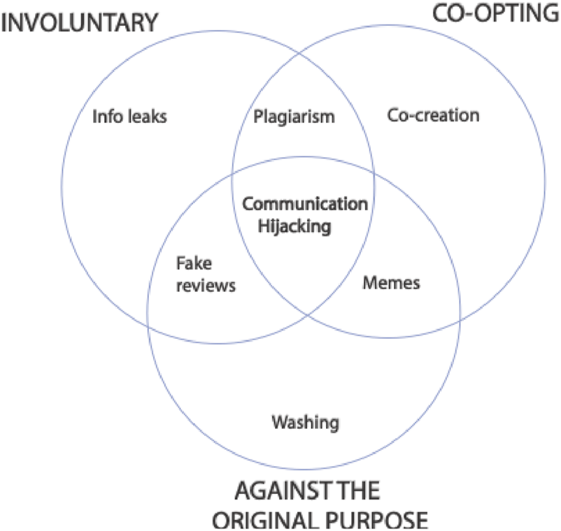 Communication hijacking opstår, når en ekstern aktør overtager og misbruger en organisations kommunikation i fjendtlig hensigt. Det adskiller sig fra almindelig kritik eller negativ omtale ved tre afgørende faktorer, som alle skal være til stede: