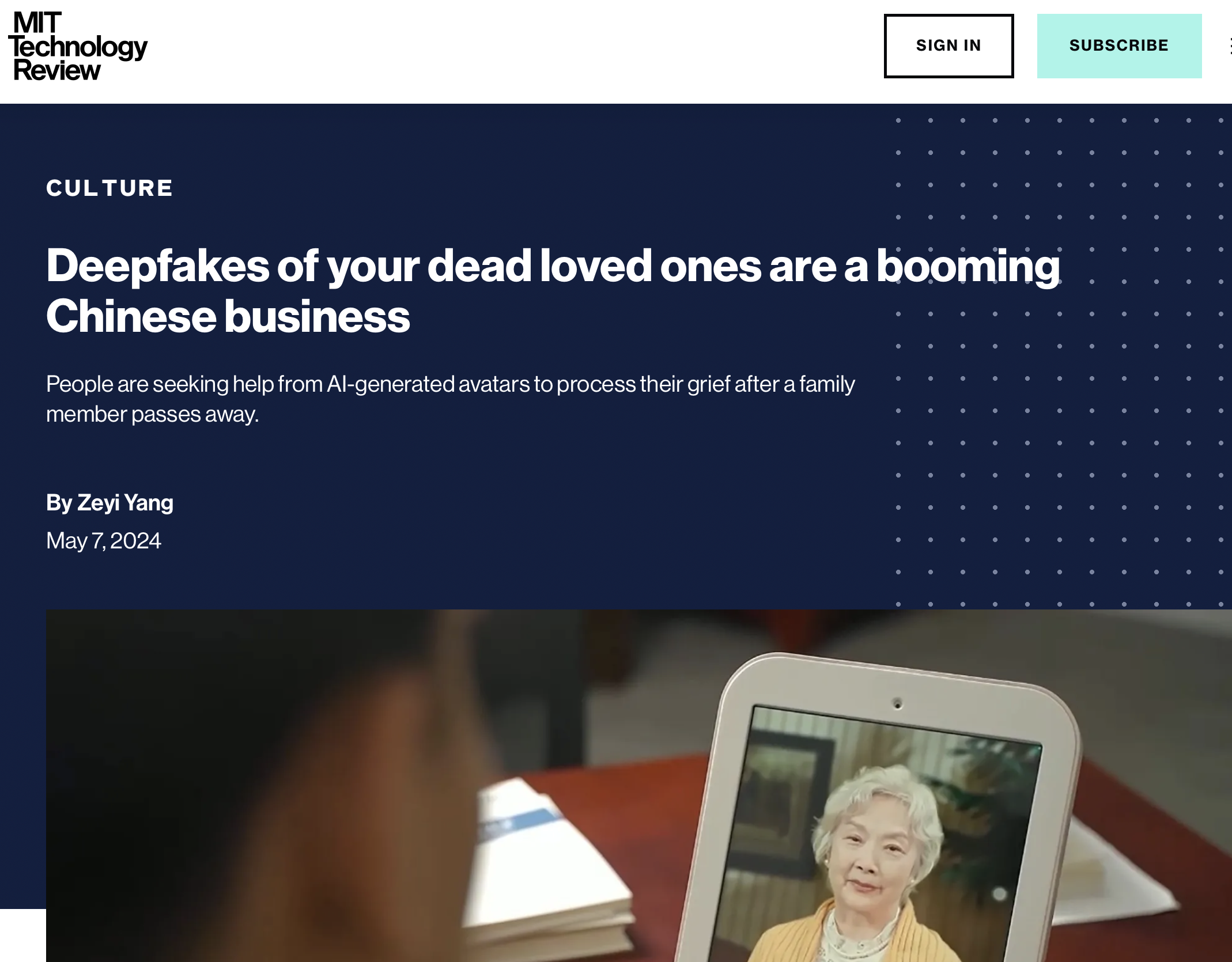 - MIT - Deepfakes of your dead loved ones are a booming Chinese business