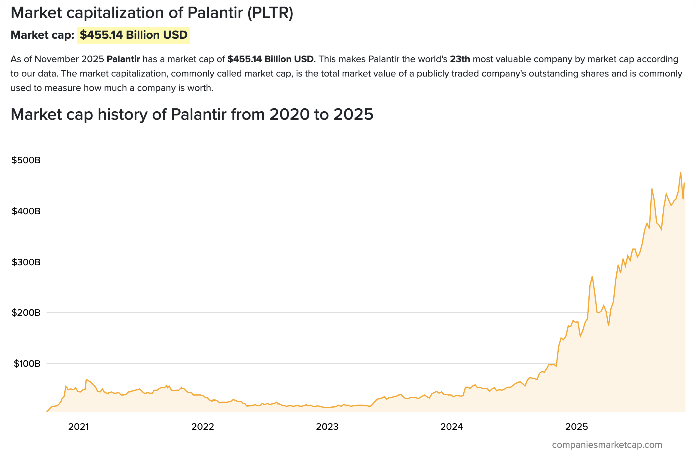 2) Palentir fordobler sin værdi indenfor et år. Se den her vilde grafik.