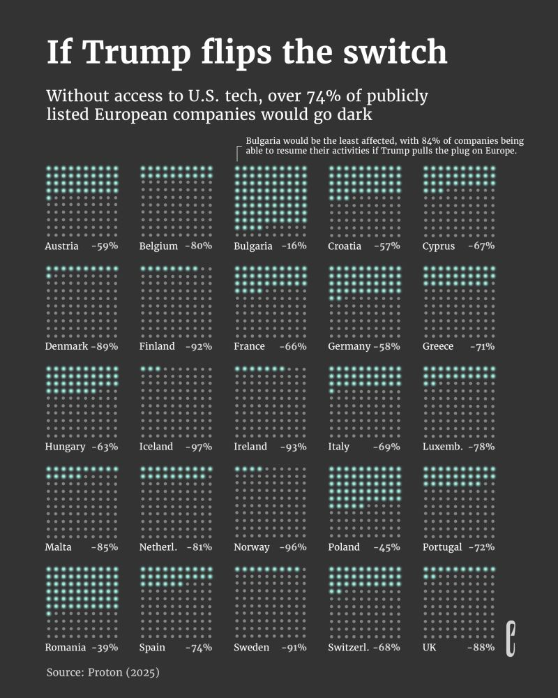 Vi vil gerne være digitalt uafhængige, men afhængigheden er dyb, bred og mangeårig. Alle europæiske landes IT-infrastruktur er i store træk bygget på amerikansk teknologi, ikke mindst i Danmark, hvor giganter som Microsoft, Meta og Google er altdominerende. Det er problematisk, fordi disse amerikanske virksomheder er underlagt amerikansk lov og den amerikanske præsident Donald Trumps troløse vilje. Det betyder, at amerikanske myndigheder og virksomheder kan lukke og slukke for europæisk IT efter forgodtbefindende.