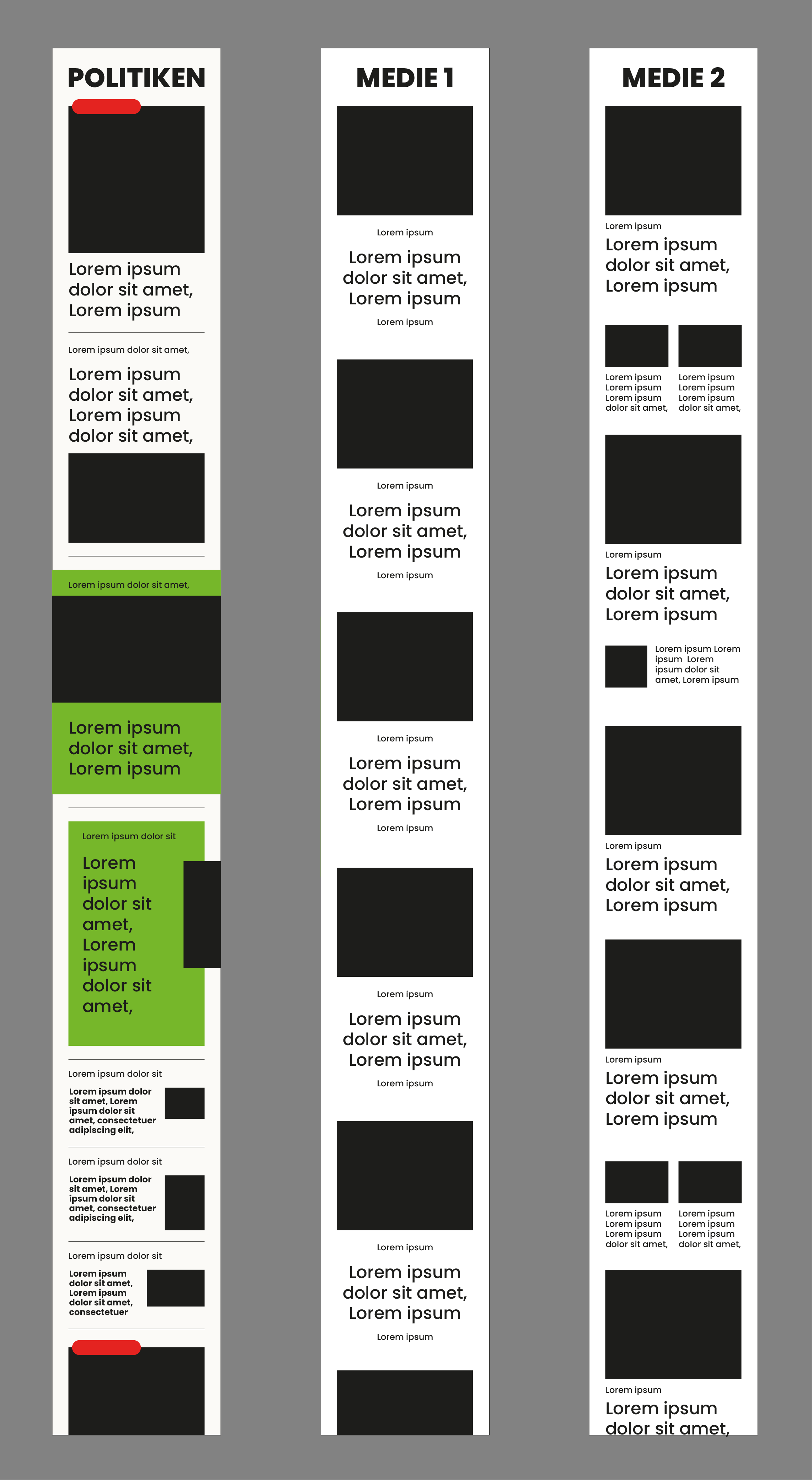 Politiken gør dog et rigtigt hæderligt forsøg på at lave et mobildesign med stor variation og temaer til de forskellige sektioner. Se her hvordan Politiken arbejder med formater sammenlignet med andre medier: