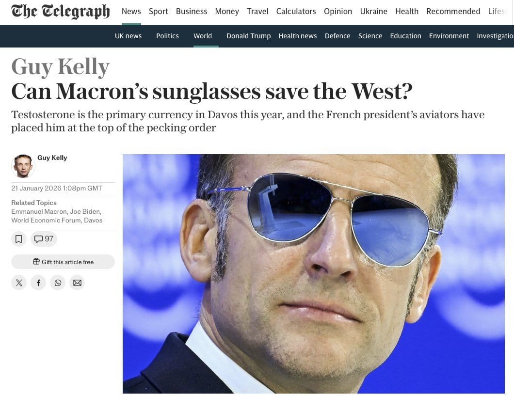 Macron’s sunglasses at Davos drew outsized attention, fueling memes and political interpretations well beyond their intended purpose. pic.twitter.com/YUjmzQms2M