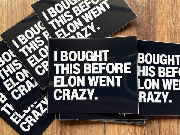 Det til et punkt hvor Teslaejerne er begyndt at sætte bumperstickers på deres Teslaer, som gør opmærksom på, at de købte bilen “før Musk blev skør”.