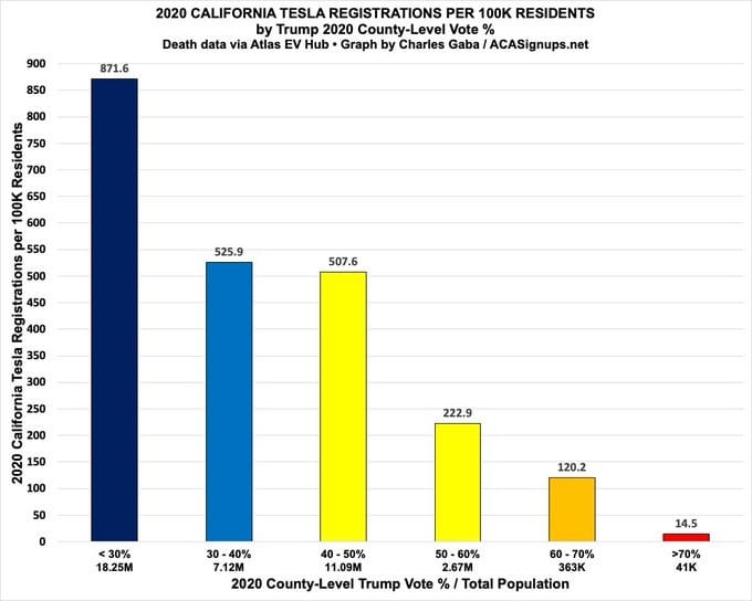 De efter amerikanske målestokke venstreorienterede demokrater, har i årevis været overrepræsenteret blandt indehaverne af Teslabiler. Det elektriske køretøj der både signalerede teknologisk og klimabevidst avantgarde og coolness.