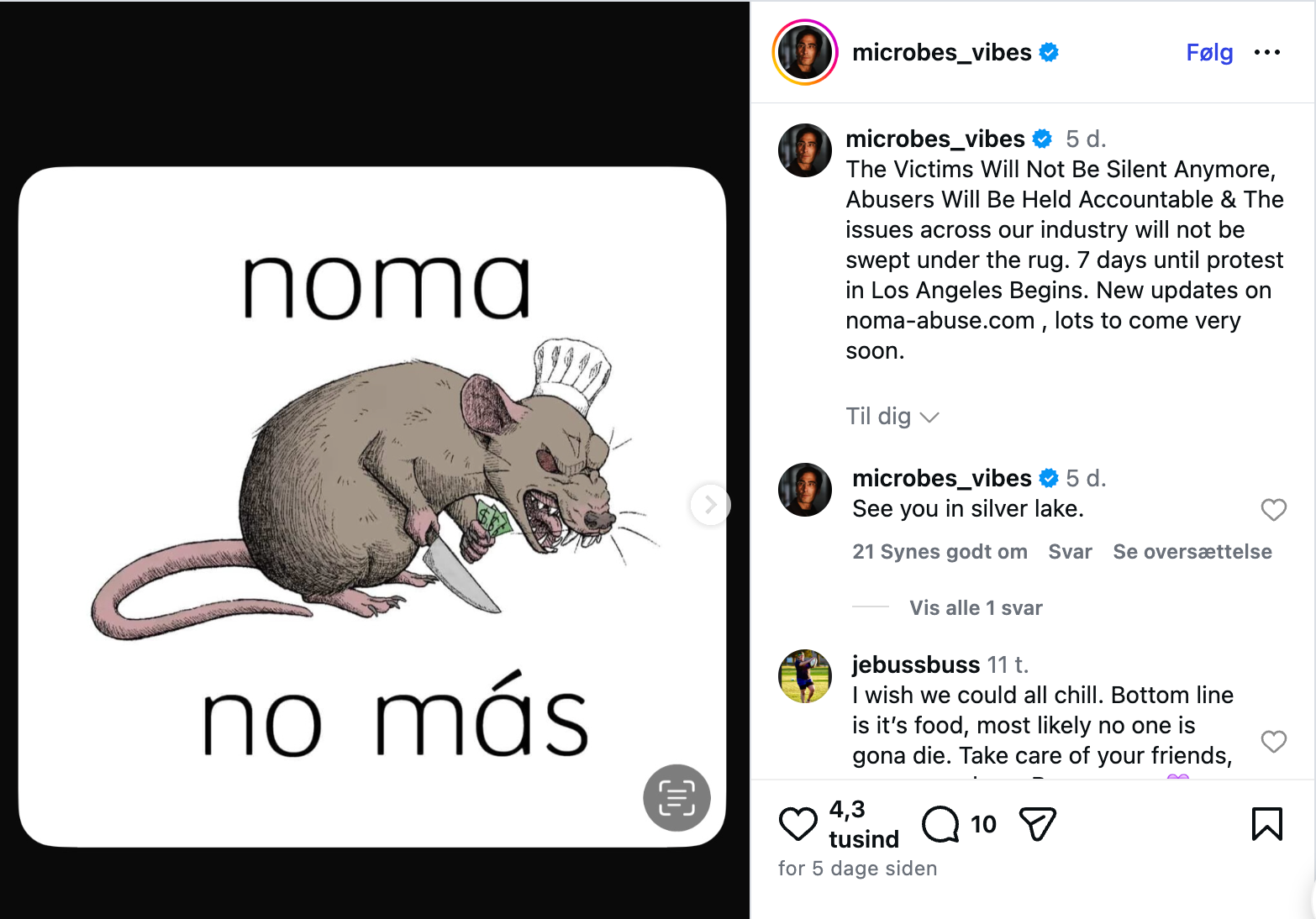 Redzepi svarede med et Instagram-opslag få dage før en udsolgt pop-up i Los Angeles til 1.500 dollars kuverten.