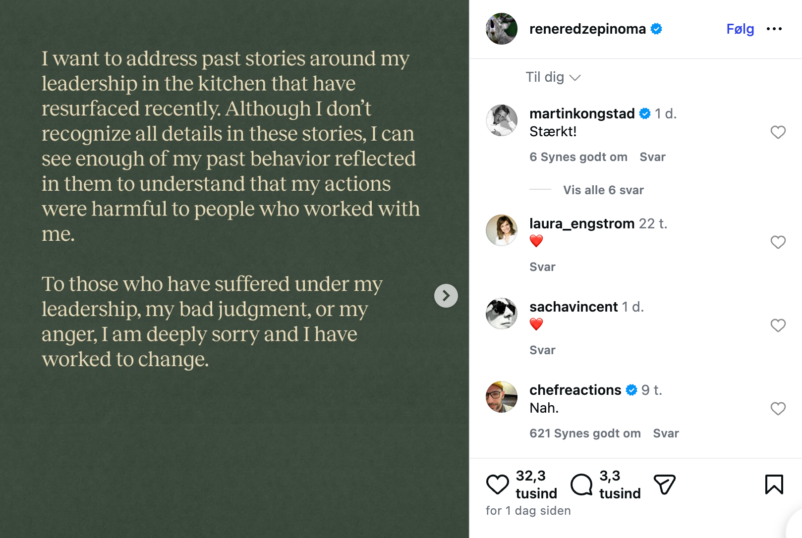 Det mest bemærkelsesværdige ved Redzepis krisestyring er ikke undskyldningen i sig selv. Det er den måde, han konsekvent har kontrolleret narrativet på.