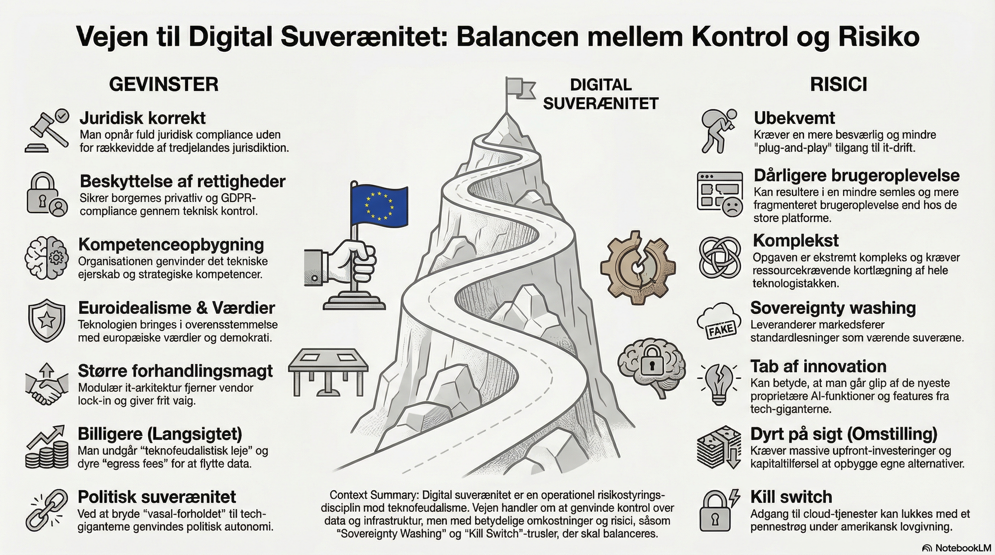 Konsekvensen af sovereignty washing er ikke teknisk. Den er demokratisk. Vi narrer befolkningen til at tro, at vi har digital suverænitet, fordi vi har købt et produkt med "sovereign" i navnet. Vi snyder os selv moralsk og politisk. Og vi svækker det politiske pres for at udvikle reelle europæiske alternativer.